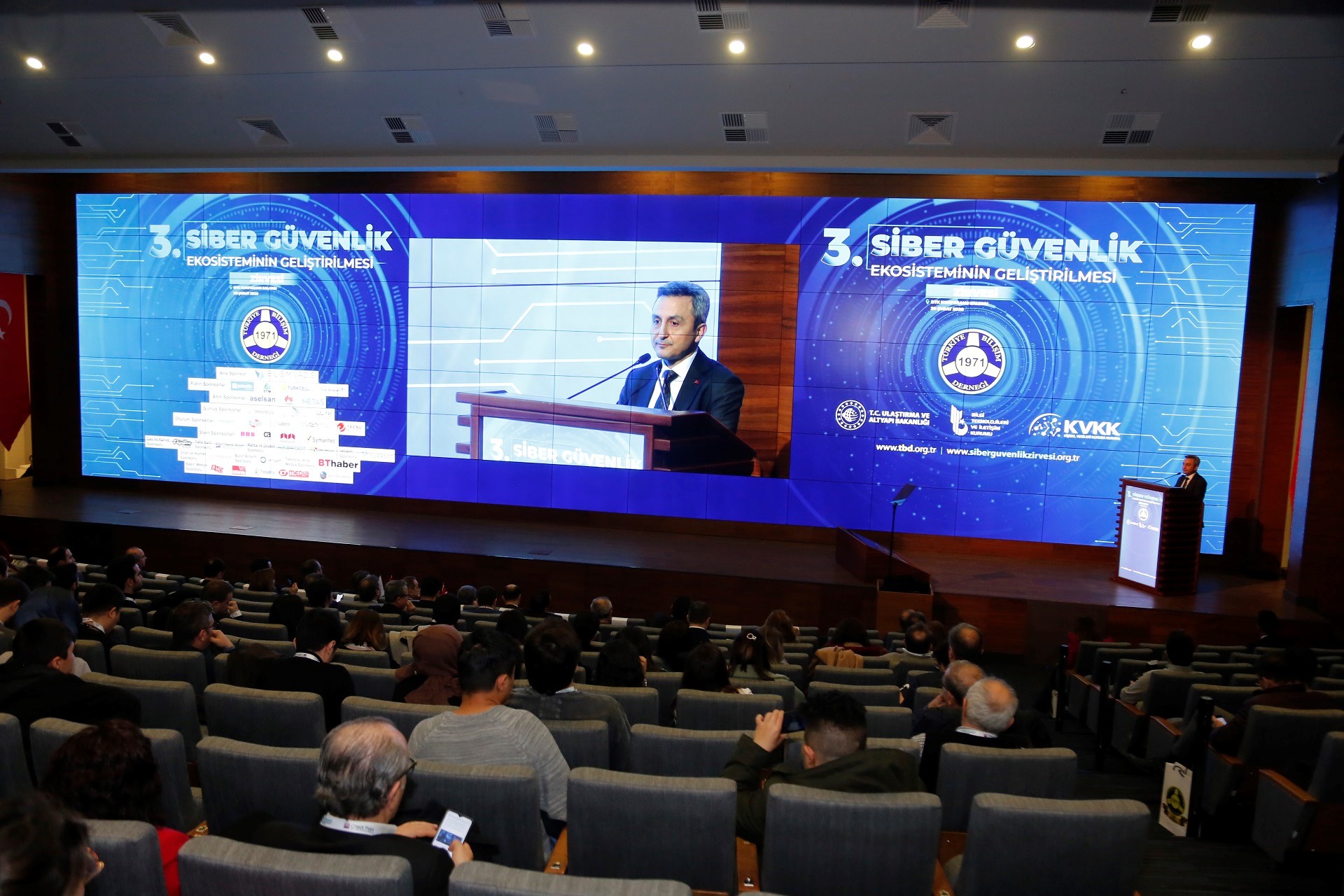 Transport and Infrastructure Deputy Minister Ömer Fatih Sayan, Türksat CEO Cenk Şen, Personal Data Protection Authority President Faruk Bilir and Turkey Informatics Association Chairman Rahmi Aktepe attended the summit, which was lent communication support by Türksat.