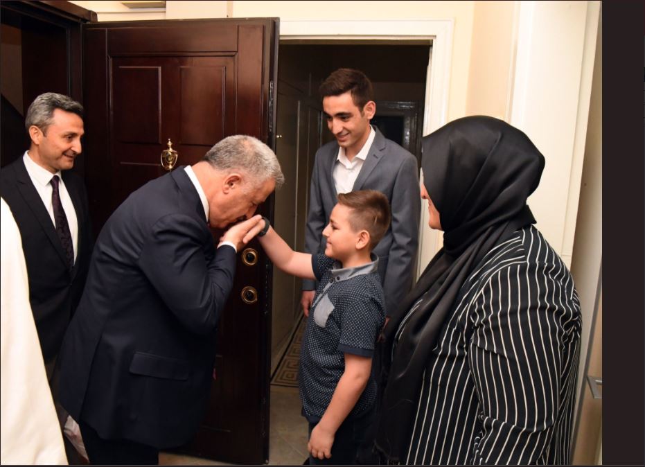 On the night of decree Minister Arslan and his wife, CEO Şen and his wife respectively broke their fast together with the family of our martyr. During the visit, which was set to remember our martyr with gratitude and mercy, Minister Arslan showed close interest to Bedirhan Karslı, the youngest son of our martyr.