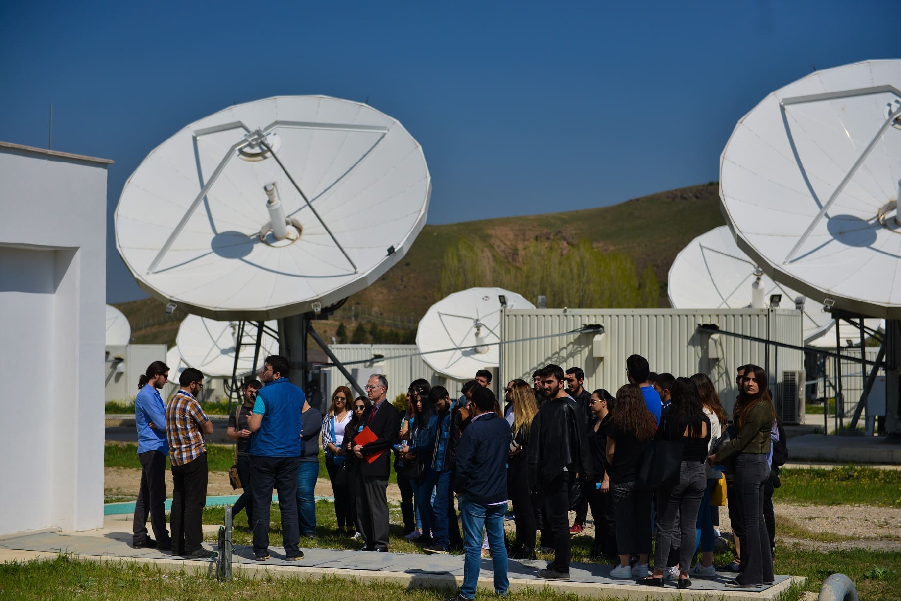 As part of the tour, the VSAT area was first visited. While company personnel, İbrahim Kurtuluş, from the Directorate of Satellite Services Corporate Solutions gave information on data broadcasting, Tarık Furkan Erbay, a personnel from the Directorate of Teleport and TV Broadcasting, gave the students information on television broadcasting.
