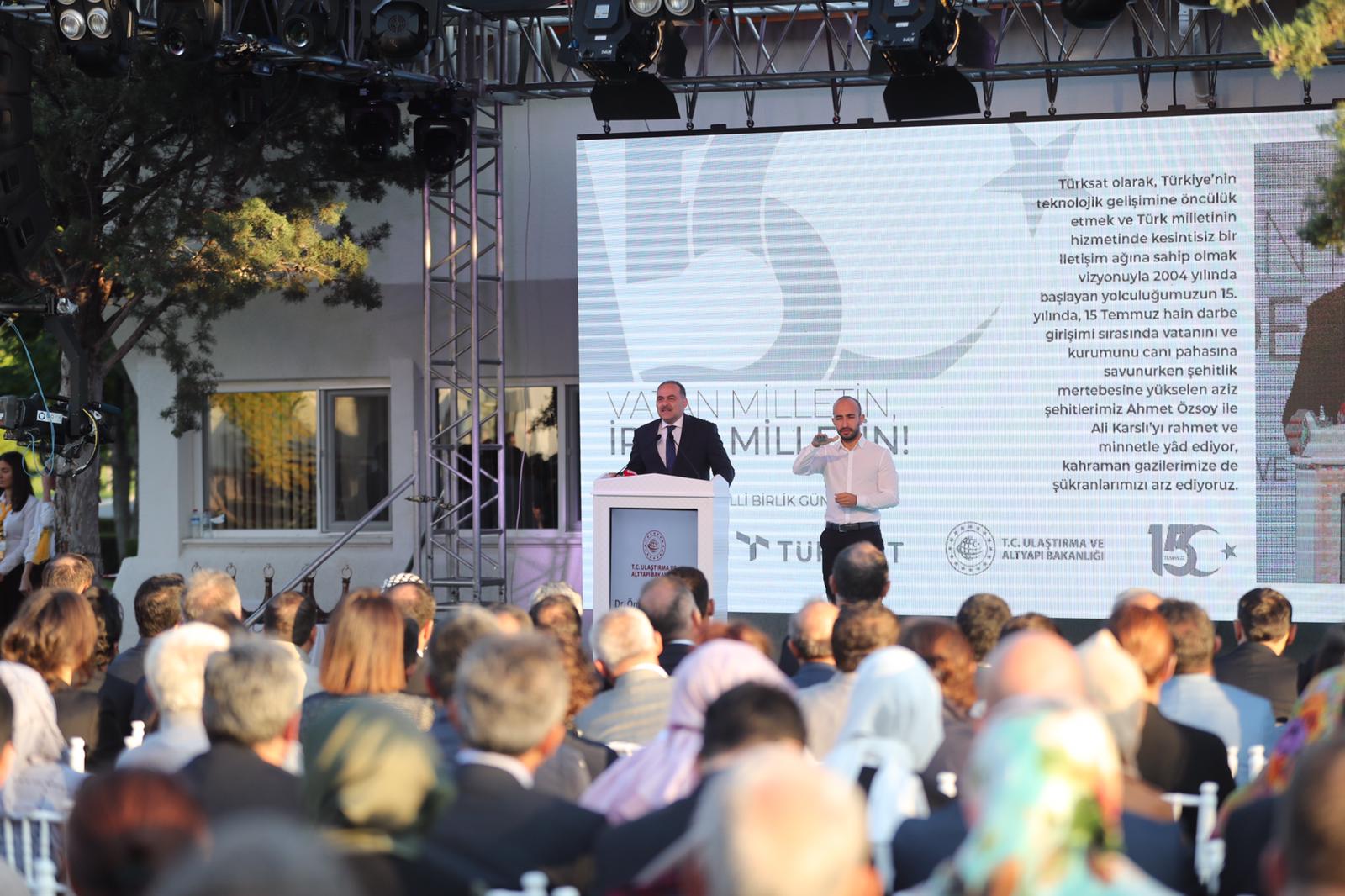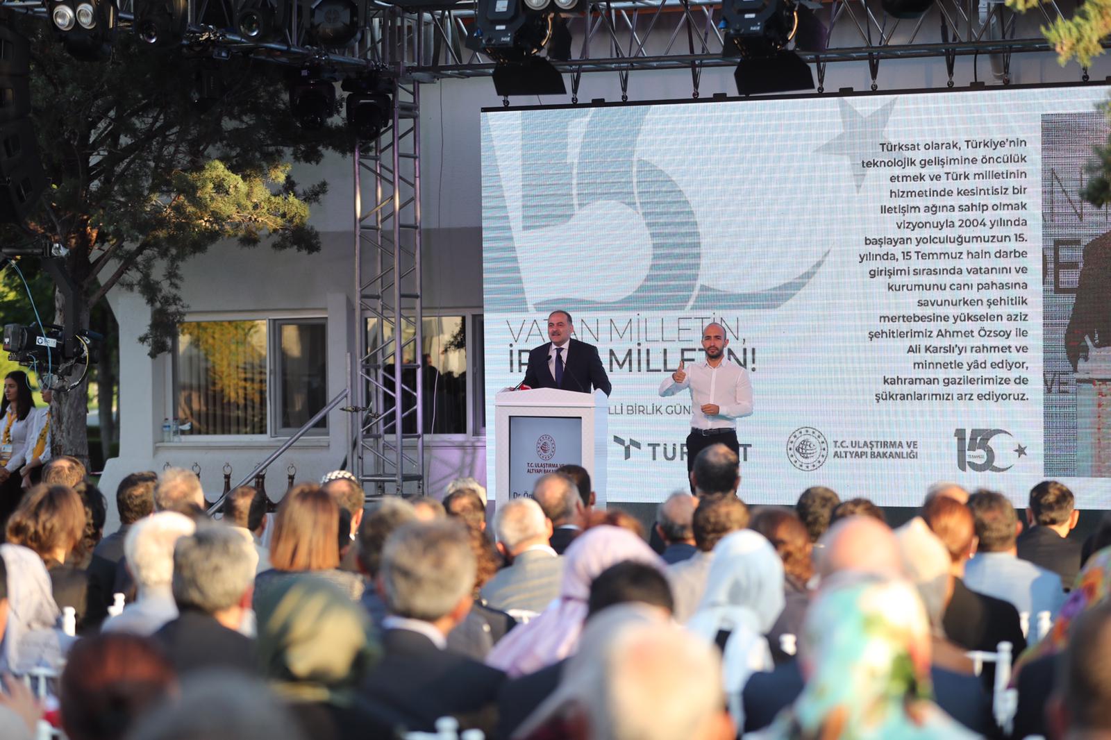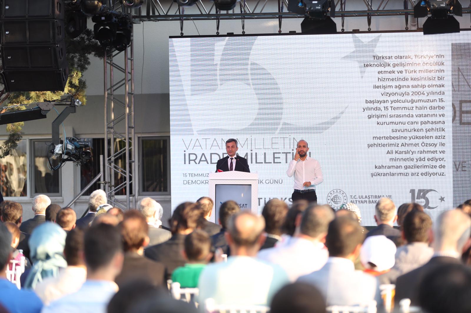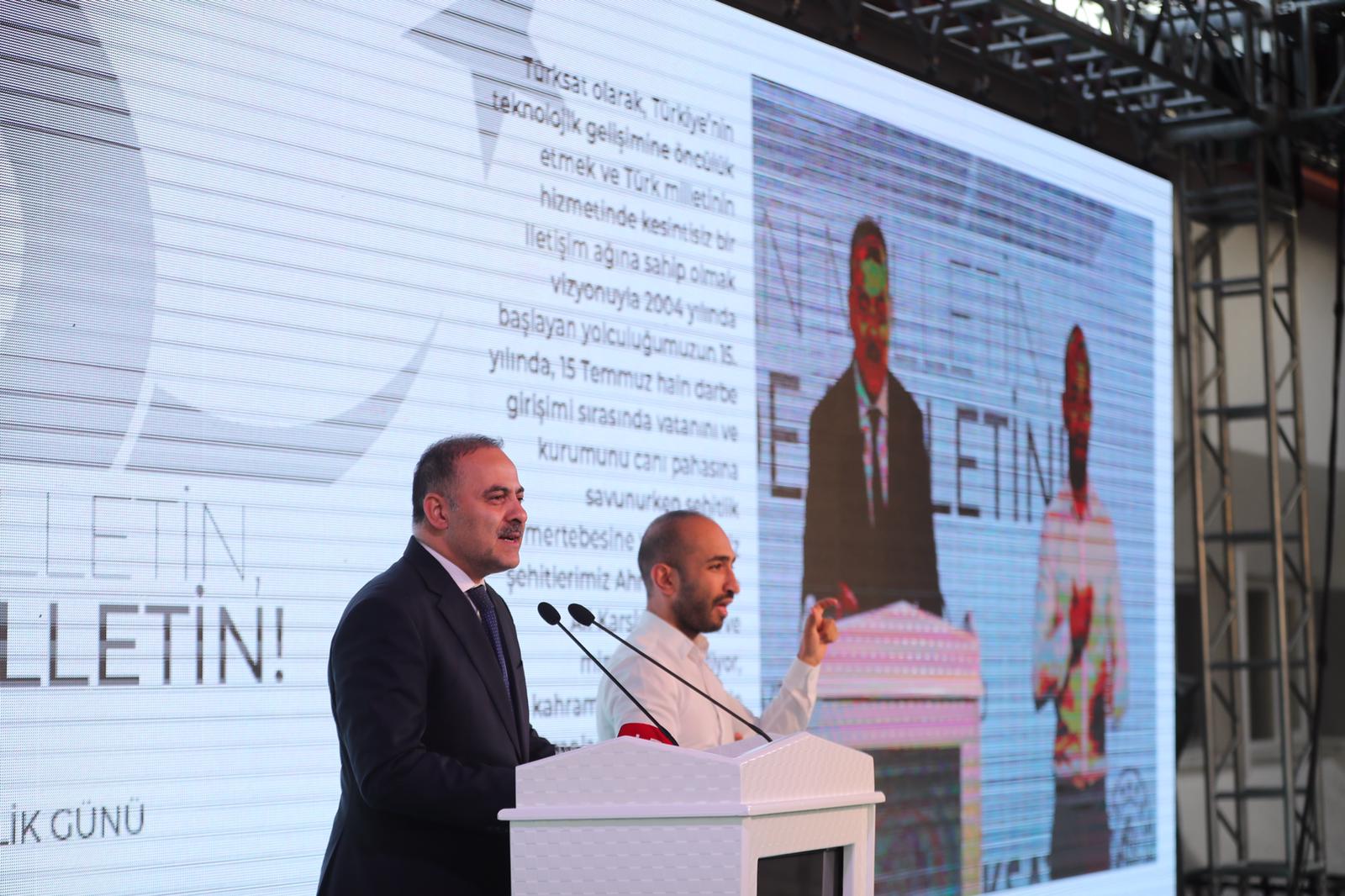 Türksat Genel Müdürü Cenk Şen ise “Milletimizin kararlılığına denk bir şekilde, şehitlerimizin, gazilerimizin ve şirketimiz çalışanlarının, o karanlık gecede hain teröristlere karşı verdiği mücadeleyi kurumsal kültürümüzün dayanağı hâline getirerek hatırda tutmayı, gelecek nesillere aktarmayı görev bileceğiz.” dedi.