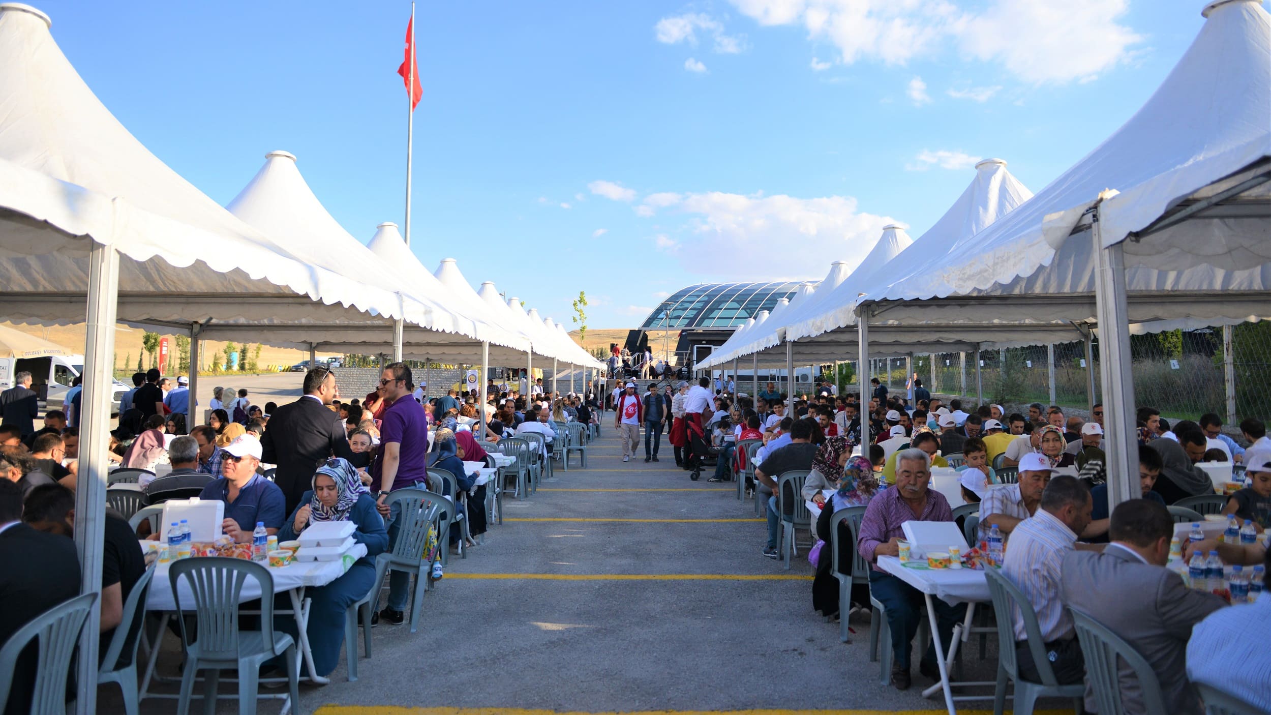 Programa, TBMM Başkanı Binali Yıldırım, Ulaştırma ve Altyapı Bakanı Cahit Turhan, Türksat Yönetim Kurulu Başkanı Dr. M. Vecdi Gönül, Türksat Genel Müdürü Cenk Şen, Gölbaşı Belediye Başkanı Fatih Duruay, ilçe protokolü, şehit aileleri ve Türksat çalışanları katıldı.