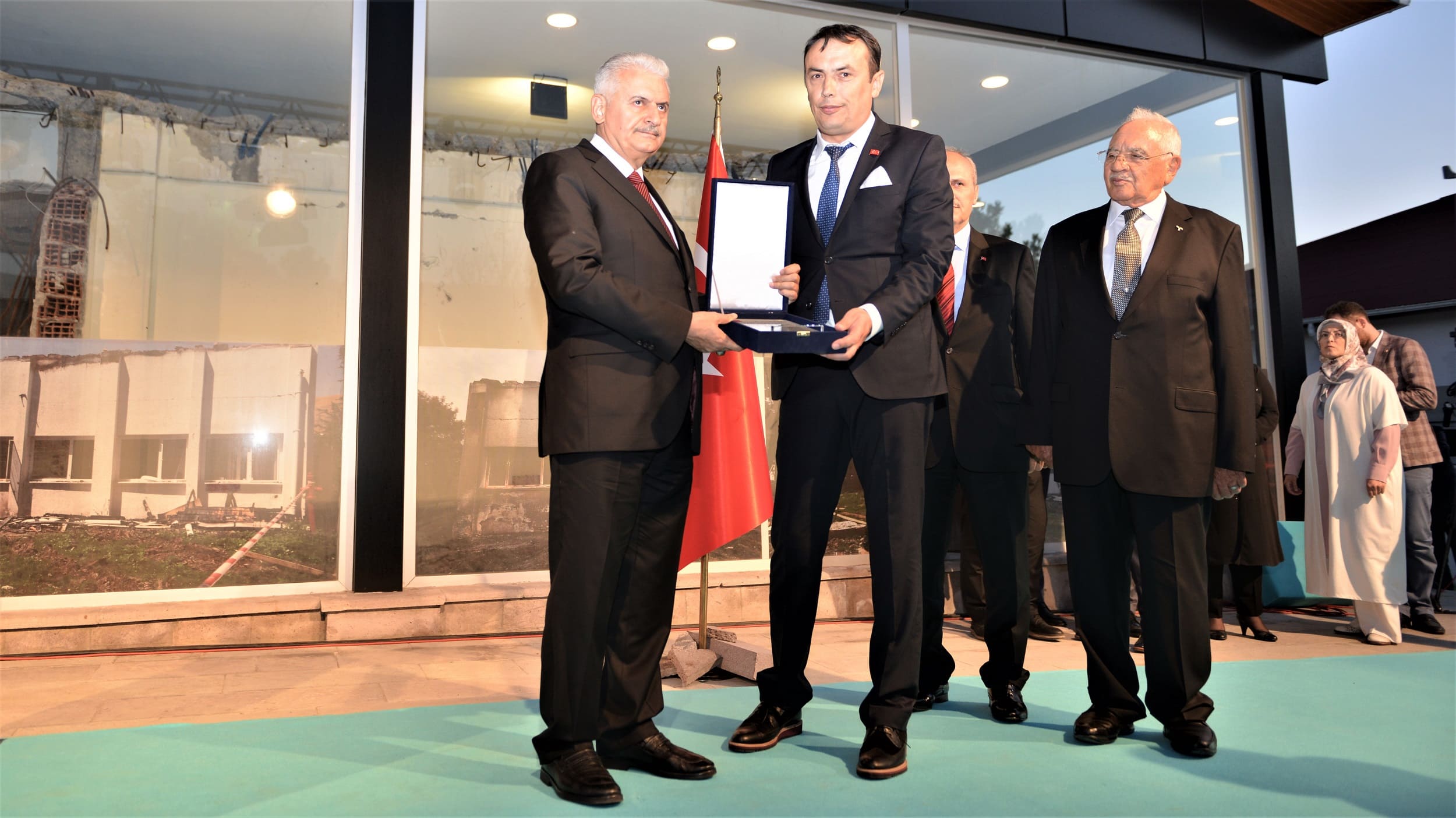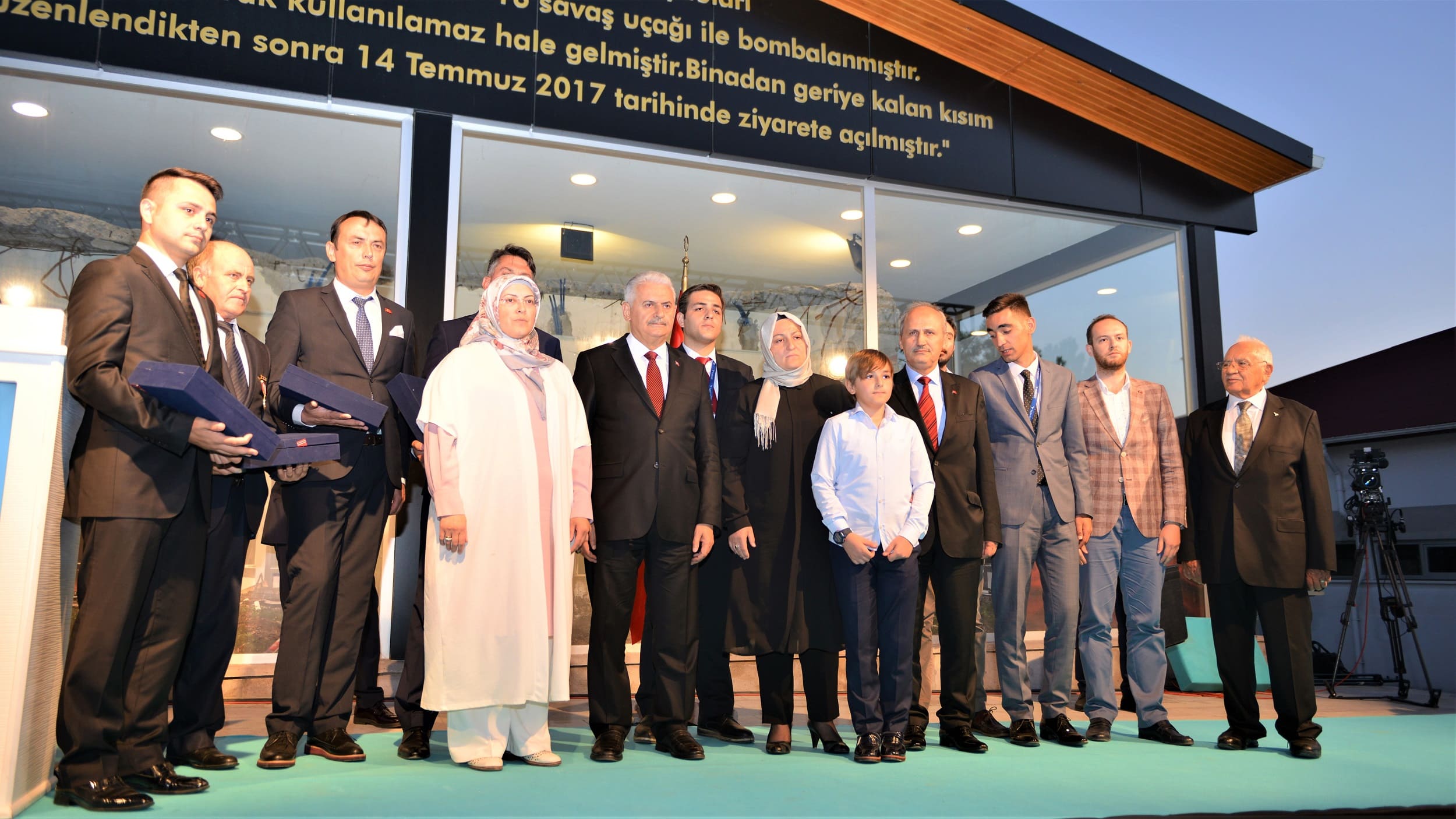 “Dedik ki ‘ölmek var dönmek yok. Bu alçaklara bu bayrağı teslim etmeyeceğiz. Bu ezanları susturmayacağız.’ Milletimizi meydanlara davet ettik ve o gece halkın gücü, tankın gücünü yendi. Ay yıldızlı bayrağımız inmedi, ezanlarımız dinmedi. Büyük milletimiz darbecilere darbeyi vurdu. Havadan buraları taramak, bombalar atmak suretiyle burayı etkisiz hale getirmeye çalıştılar. Türksat’ta çalışan arkadaşlarımızın basiretli ve akıllı tutumları sayesinde bu emellerine ulaşamadılar. Burada iki değerli Türksat çalışanı, Ahmet Özsoy ve Ali Karslı şehit oldu. Allah rahmet eylesin; mekânları cennet olsun. Ayrıca Ferhat Derecik, Muhammed Emin Sergili, Bilal Davut Hasetçi, Halil Ersoy gazi oldu. Cenabı Mevlam, görevi başında ayrılmayarak canını veren bu kardeşlerimize ve bütün şehitlerimize rahmet eylesin. Vatan savunmasında teröre karşı mücadele eden şehitlerimize de Allah rahmet eylesin; gazilerimize hayırlı, uzun ömürler versin.”