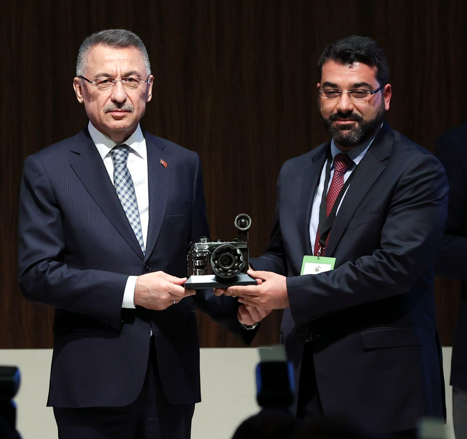 Cumhurbaşkanı Yardımcısı Fuat Oktay, açılışx konuşmasının ardından, Türsat AŞ’nin Çevre Forumu’na verdiği desteklerden ötürü Genel Müdür Yardımcısı Metin Çavuşoğlu’na teşekkür plaketi hediye etti.