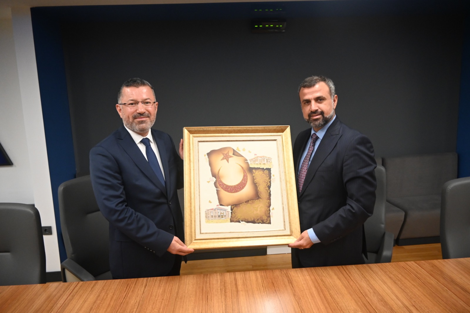 Ziyaretin ardından Türksat Genel Müdürü Ertok tarafından Karabük Üniversitesi Rektörü Prof. Dr Fatih Kırışık’a tablo hediye edildi.