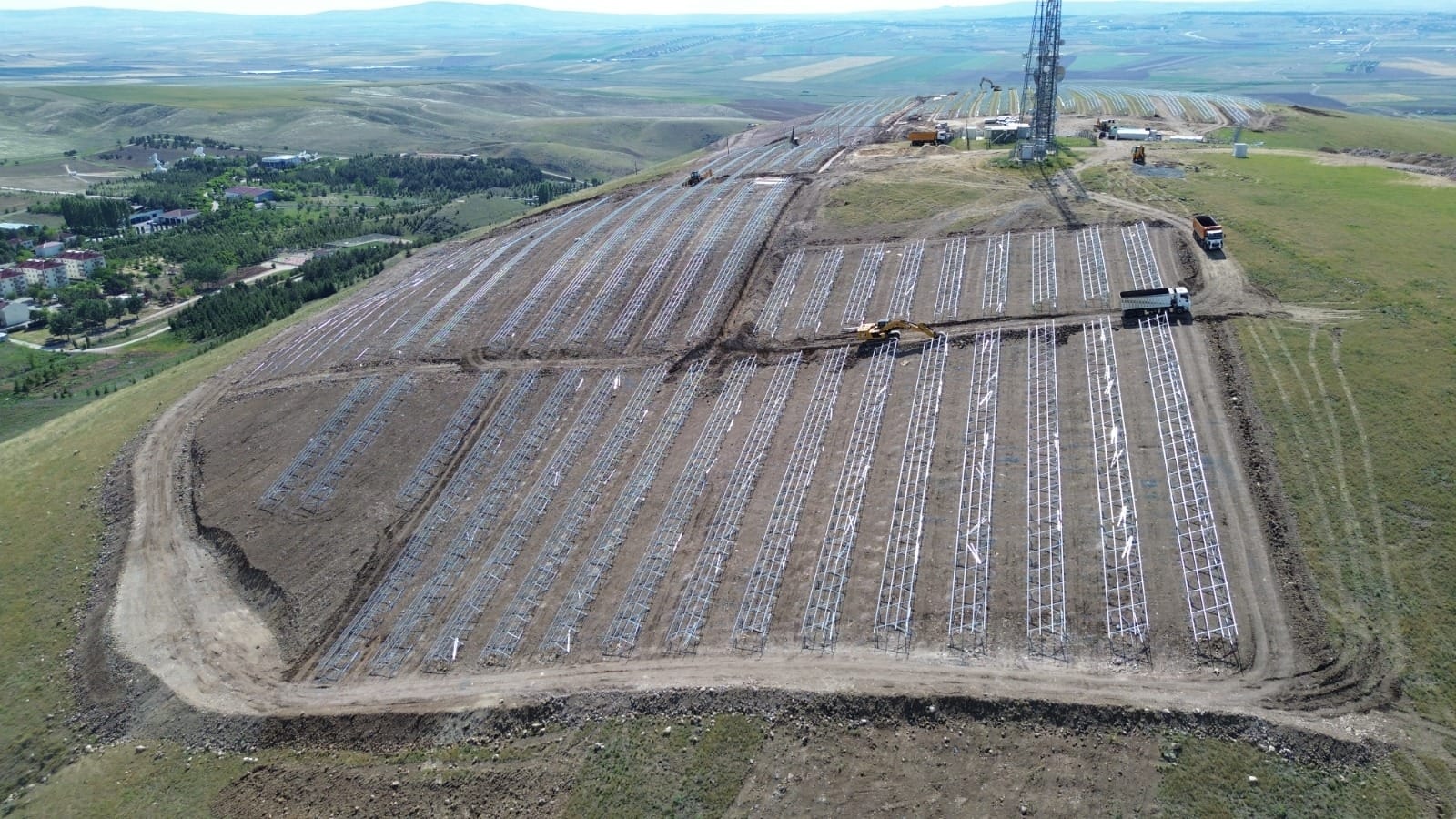 Ulaştırma ve Altyapı Bakan Yardımcısı Dr. Ömer Fatih Sayan, Türksat Gölbaşı Yerleşkesi’nde nisan ayında yapımına başlanan 9,9 MWp’lik Güneş Enerji Santrali’nin (GES) kurulum çalışmalarını yerinde inceledi.