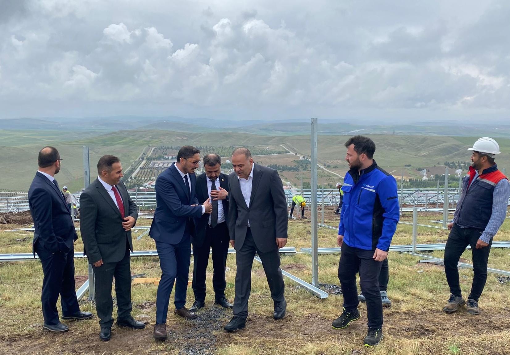 Güneş Enerji Santrali şantiyesini ziyaret eden Ulaştırma ve Altyapı Bakan Yardımcısı Dr. Ömer Fatih Sayan’a Yönetim Kurulu Başkanı Prof. Dr. Kemal Yüksek, Genel Müdür Hasan Hüseyin Ertok, İdari ve Mali İşler Genel Müdür Yardımcısı Ömer Faruk Çöllüoğlu, Bilişim Hizmetleri Genel Müdür Yardımcısı Ahmet Savaş ve Kablo Hizmetleri Genel Müdür Yardımcısı Ahmet Selami Söğüt eşlik etti.