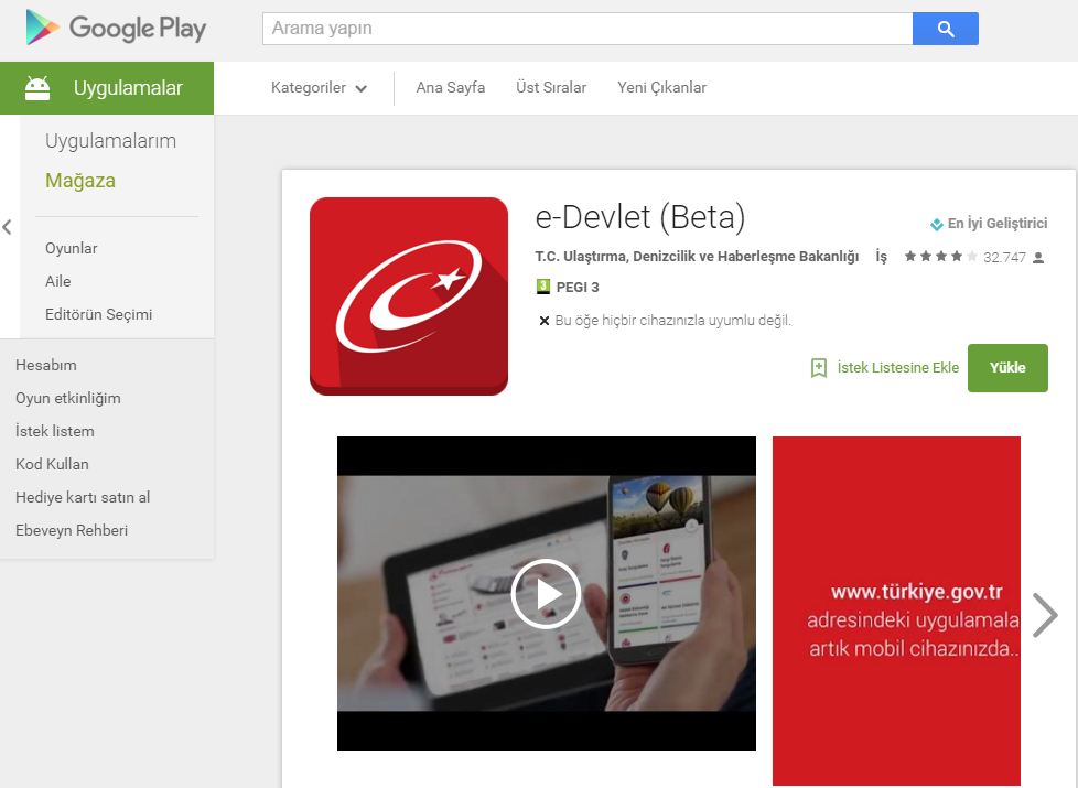 Mobil Uygulamalar tanıtım sayfası: https://static.turkiye.gov.tr/themes/edk_mobil/tanitim/index.html