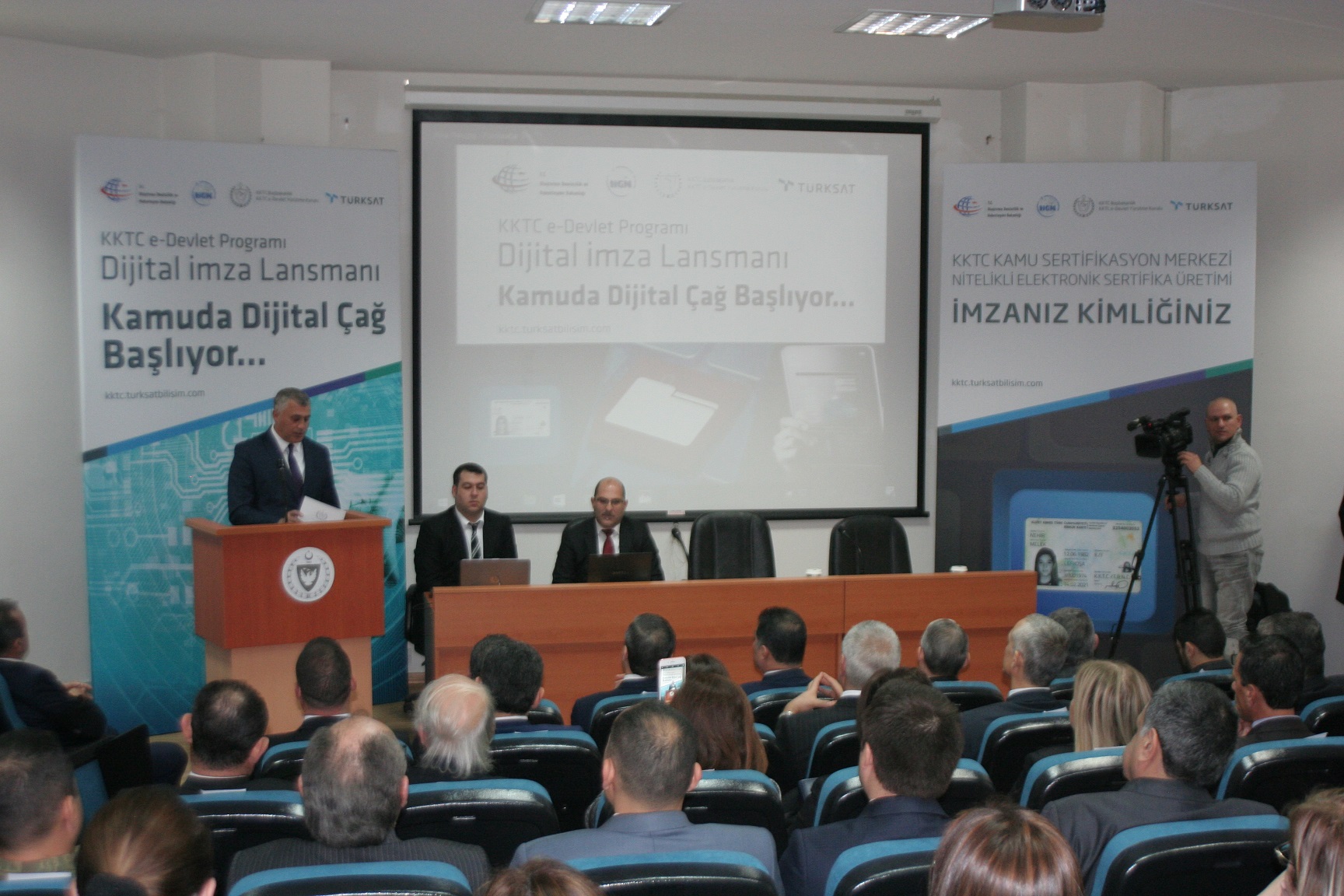 KKTC e-Devlet Programı içinde yer alan e-Kimlik Projesi kapsamında yer alan e-İmza hayata geçti. İlk e-İmza KKTC Başbakanı Hüseyin Özgürgün tarafından atıldı. T.C. Ulaştırma Denizcilik ve Haberleşme Bakanlığı yürütmesinde Türksat A.Ş.’nin gerçekleştirdiği Kamu Sertifikasyon Merkezi, EBYS, e-Nüfus ve e-Kimlik projelerinin ardından e-İmza da kullanılmaya başlandı.