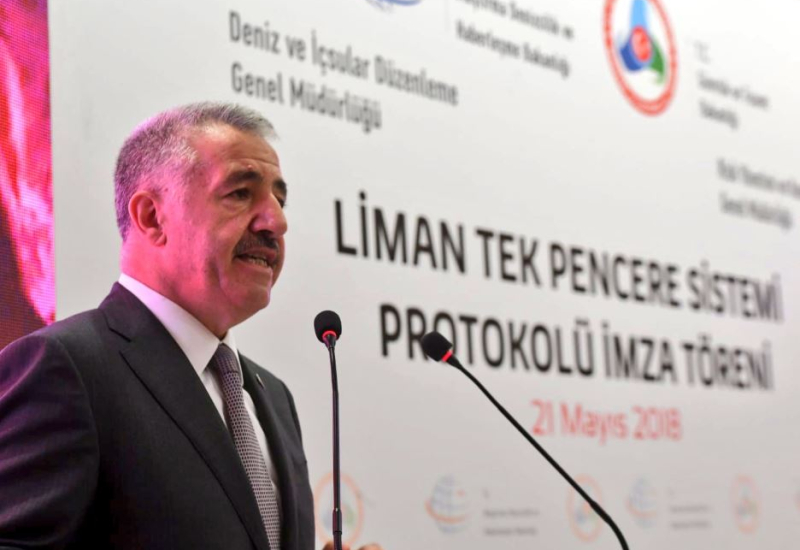 Limanlara gelen gemilere ait bildirimlerin tek bir sistem üzerinden elektronik yapılmasına imkân sağlayacak “Liman Tek Pencere Sistemi Protokolü” Ulaştırma Denizcilik ve Haberleşme Bakanı Ahmet Arslan ve Gümrük ve Ticaret Bakanı Bülent Tüfenkci arasında imzalandı.