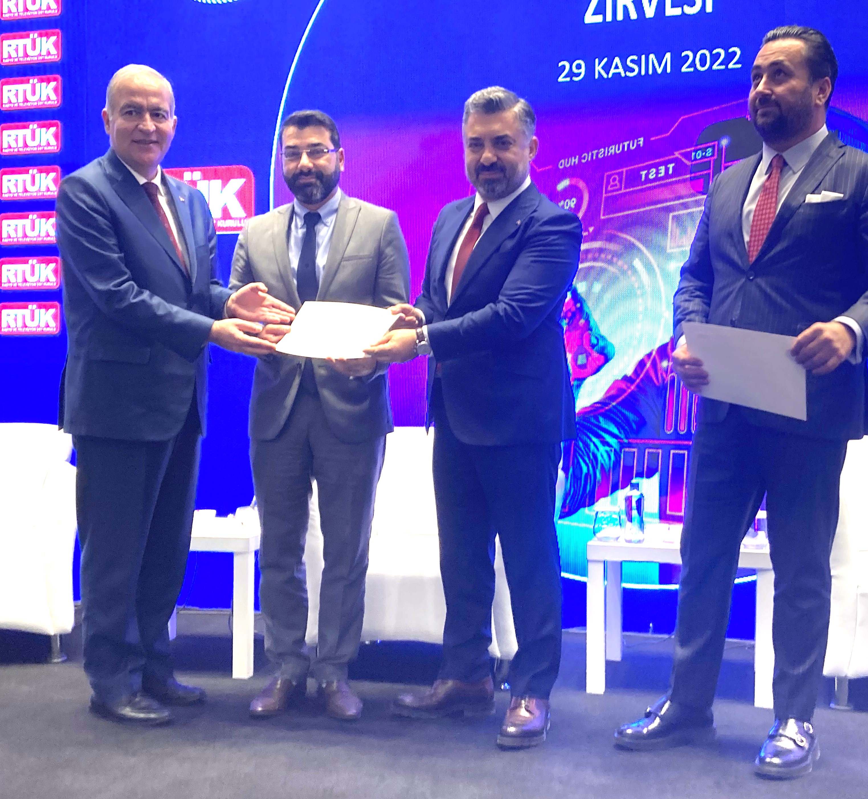 RTÜK Başkanı Ebubekir Şahin’in konuşmasıyla başlayan zirvede açılış oturumunun sonunda, zirveye sağladığı katkılardan dolayı Türksat A.Ş.’ye verilen NFT sertifikasını Türksat A.Ş. Genel Müdür Yardımcısı Metin Çavuşoğlu RTÜK Başkanı Ebubekir Şahin ve Aile ve Sosyal Politikalar Bakan Yardımcısı İsmail Ergüneş’in elinden aldı.