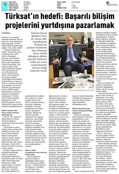 Türksat A.Ş. Genel Müdürü Prof. Dr. Ensar GÜL'ün BT Haber dergisinin bu haftaki sayısında yayınlanan röportajına erişim için tıklayınız.
