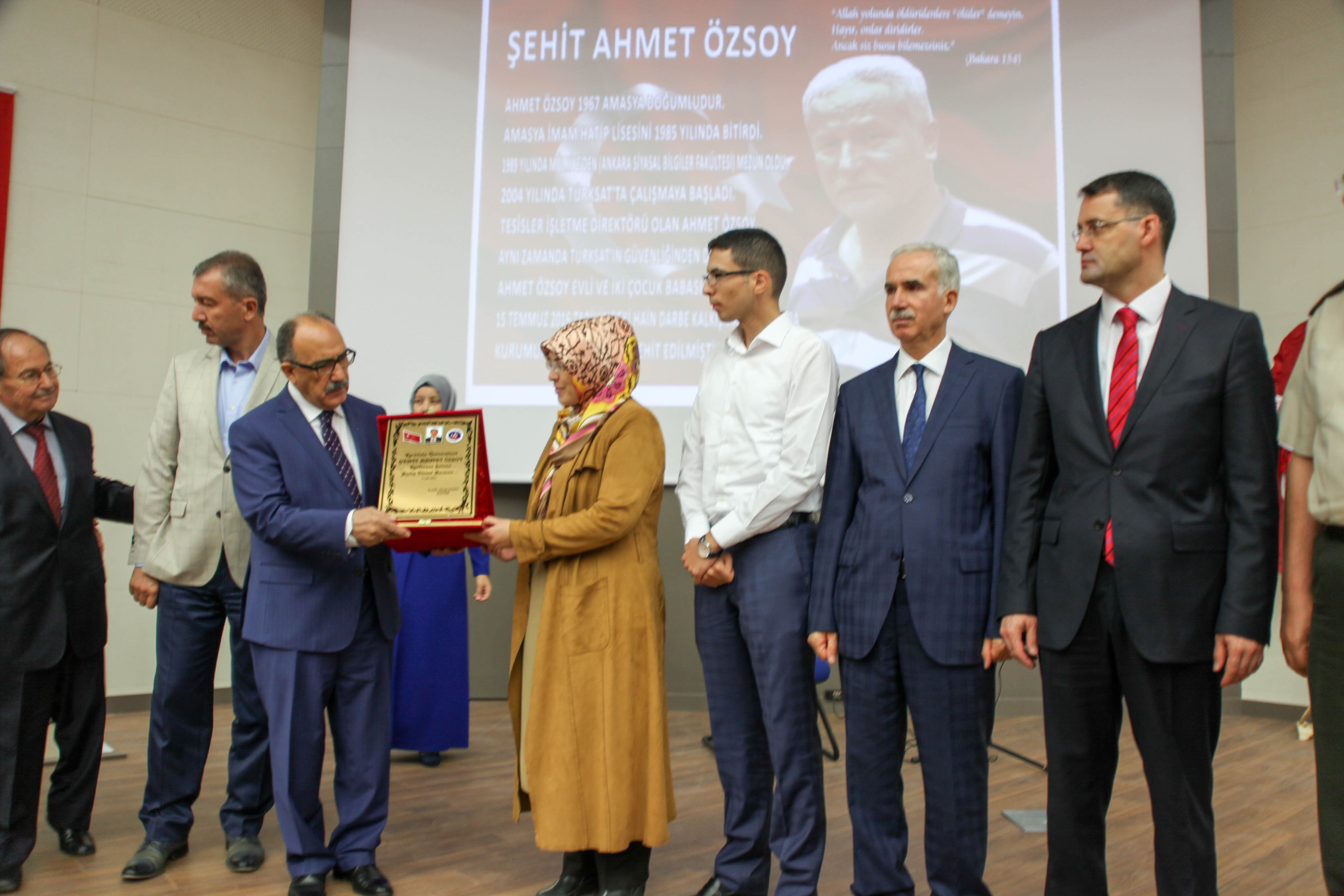 Konuşmaların ardından Atalay, Özsoy’un eşi Yasemin Özsoy’a ve oğlu Abdullah’a plaket takdim etti.