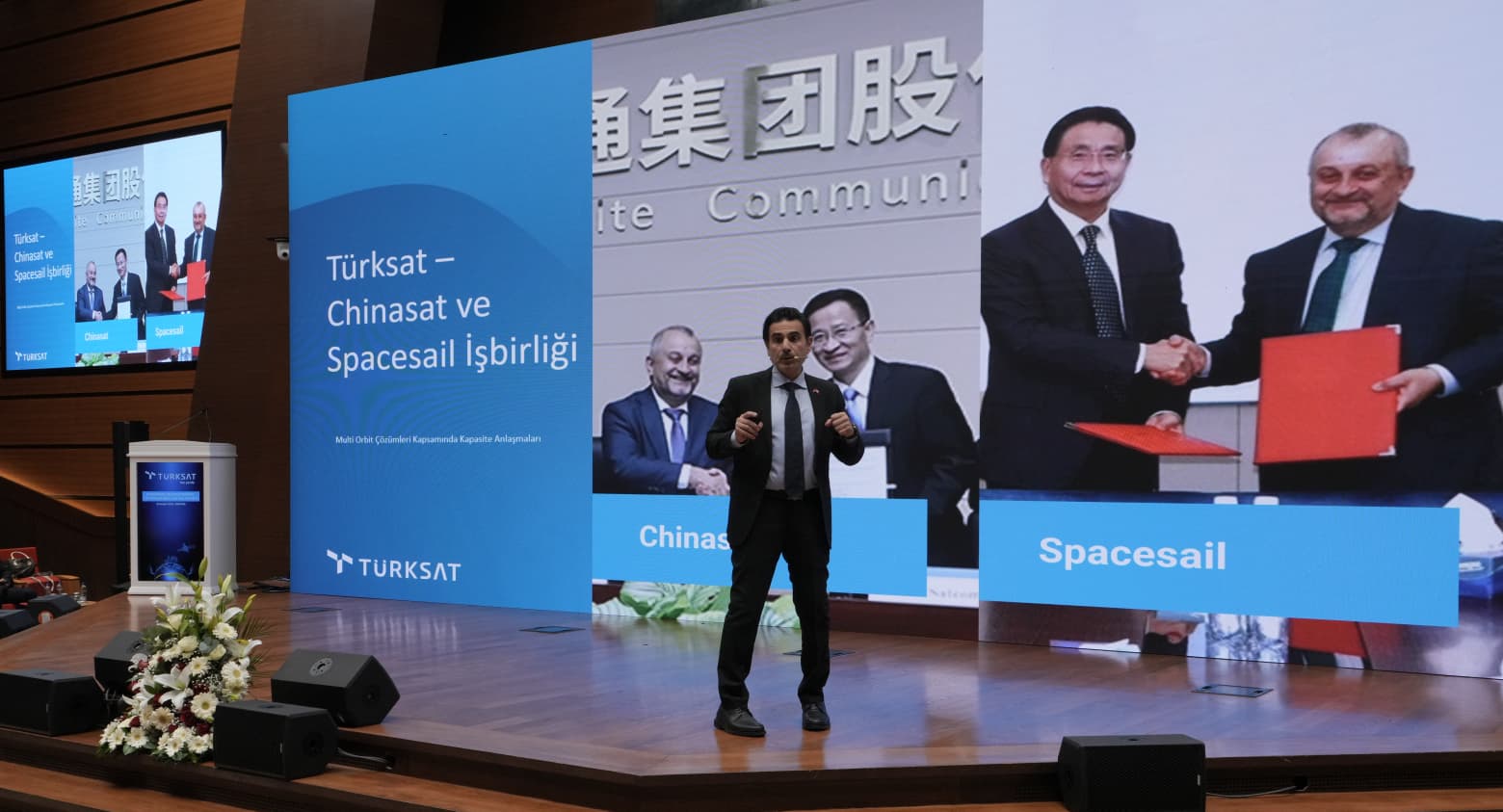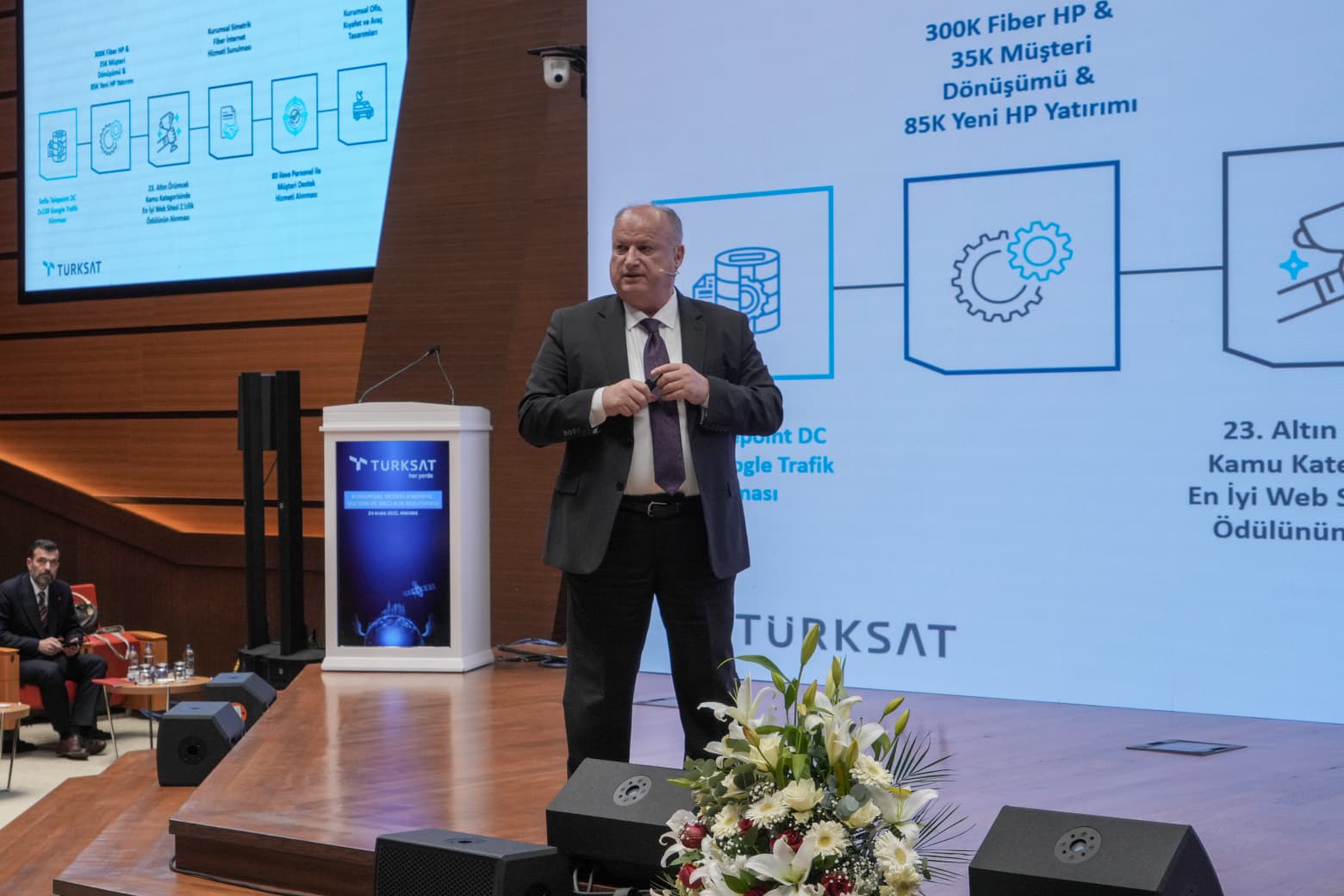 Ulaştırma ve Altyapı Bakan Yardımcısı Dr. Ömer Fatih Sayan, programın açılışında yaptığı konuşmada dünyada ezber bozan bir dönüşüm yaşandığını belirterek, “Biz bu dönüşümün en önemli parçalarından bir tanesiyiz.” dedi. Türkiye’nin son 23 yılda yaptığı yatırımların her alana damga vurduğunu ifade eden Sayan, “İlerlemek güzel bir şey ama bir yalpalaya yalpalaya ilerlemek var, bir de Türksat’ın olduğu gibi sağlam ve emin adımlarla ilerlemek var.” diye konuştu. Türksat’ın Türkiye’nin gözde kurumlarından biri olduğunu vurgulayan Sayan, “Türksat da işte bu anlayışın en önemli taşıyıcılarından, Türkiye’mizin en gözde kurumlarımızdan bir tanesi; bence en değerlisi.” Dedi.