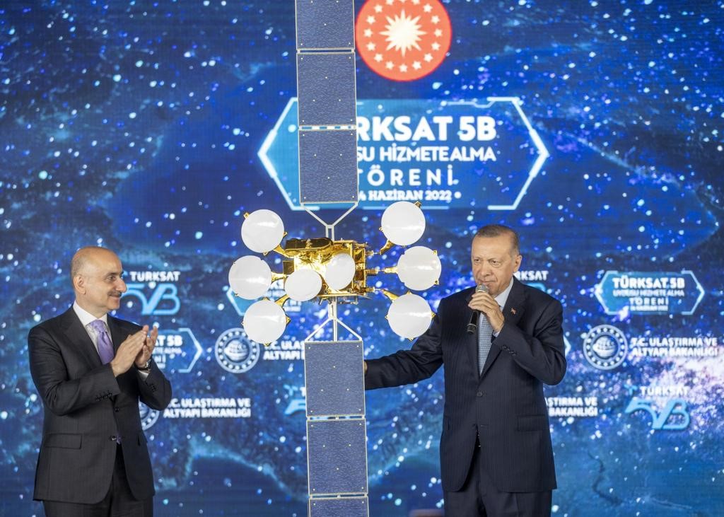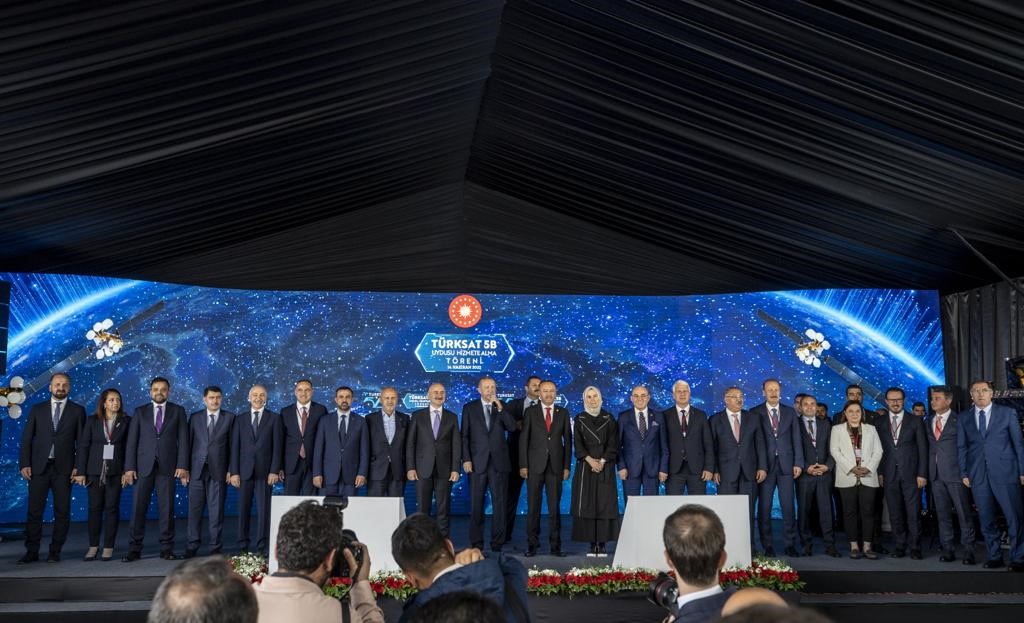 Türksat 5B uydusunun Türkiye'ye, millete ve sektöre hayırlı olmasını dileyen Erdoğan, Türkiye'nin uzay macerasında yeni bir aşama olan bu uyduya kadar geçen sürecin, Türkiye'de eser ve hizmet siyasetinin hangi engeller aşılarak yürütüldüğünün hikayesi olduğunu söyledi. "Uzay vatana" yeni uydular da gönderdiklerini, Türksat 4A'nın 2014'te, Türksat 4B'nin ise 2015'te uzaydaki yerini aldığını anımsatan Erdoğan, bu uyduların yanına yenilerini eklediklerini anlattı. Geçen yıl Türksat 5A ve Türksat 5B'yi fırlatan Türkiye'nin aynı sene içinde uzaya iki uydu gönderebilen ender ülkeler arasına girdiğini belirten Erdoğan, şunları söyledi: