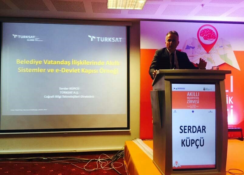 Ayrıca Türksat Coğrafi Bilgi Teknolojileri Direktörü Serdar Küpçü, zirvede “Belediye-Vatandaş İlişkilerinde Akıllı Sistemler” oturumunda “Vatandaş İlişkilerinde Akıllı Sistemler ve e-Devlet Kapısı Örneği” başlıklı bir sunum yaptı. Zirvede Türksat tarafından açılan stantta, ziyaretçilere TürksatGlobe ve e-Devlet Kapısı hizmetleri tanıtılırken, stant katılımcılardan yoğun ilgi gördü. Ayrıca, ziyaretçilere uydu görüntülerinden oluşan posterler hediye edildi.