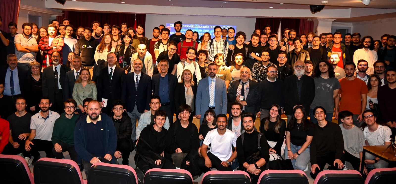 Genel Müdür Ertok, Türksat ile ilgili genel bilgilendirme yaparken, mühendislik öğrencilerine tavsiyelerde bulundu. Konferans toplu hatıra fotoğrafının ardından sona erdi.