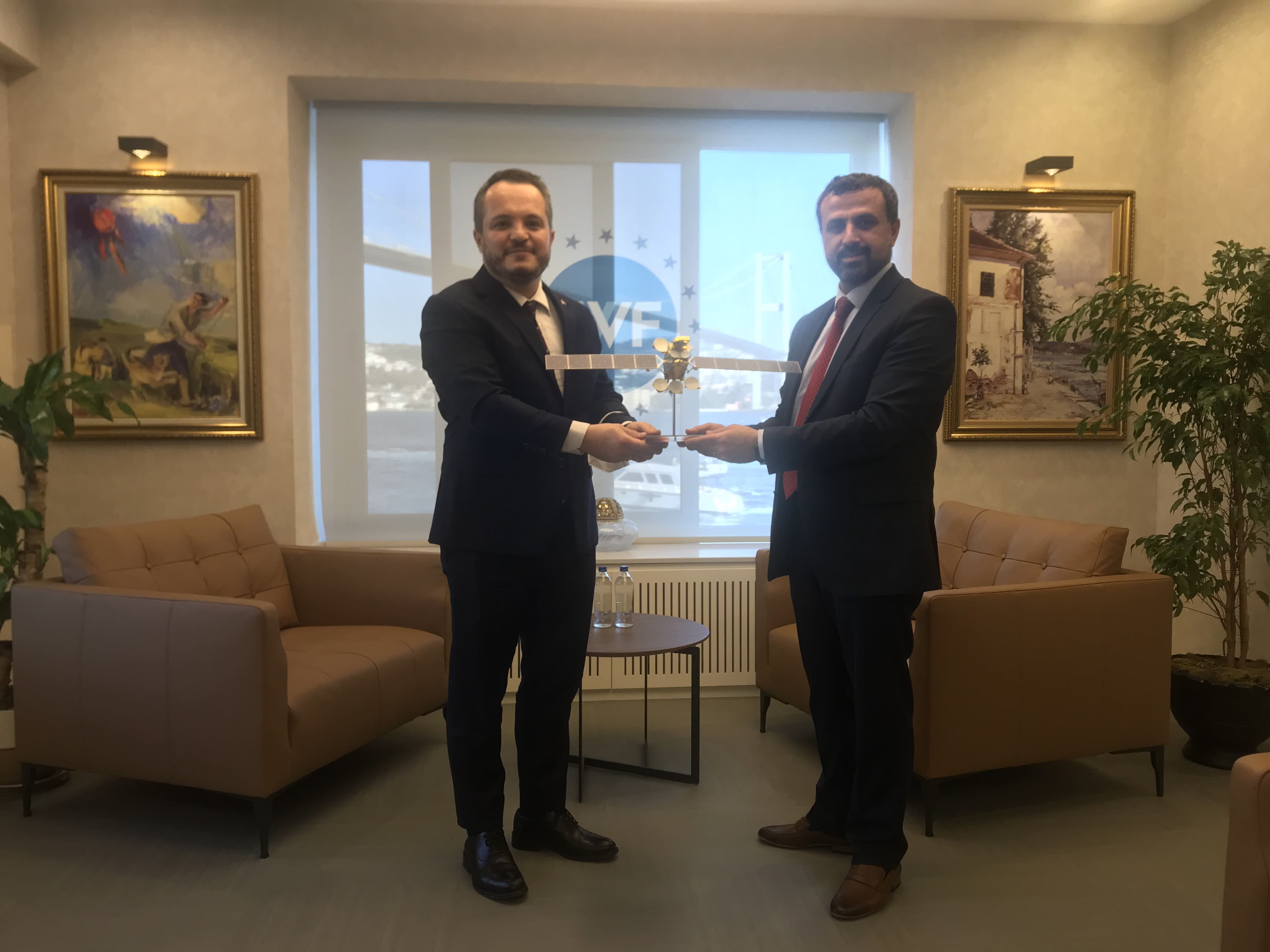 Türksat A.Ş. Genel Müdürü Hasan Hüseyin Ertok, Genel Müdür Yardımcısı Metin Çavuşoğlu ve Türksat A.Ş. Bütçe ve Mali Kontrol Direktörü Oğuz Enis Peru, Mart ayında Türkiye Varlık Fonu Genel Müdürü olarak atanan Salim Arda Ermut'a hayırlı olsun ziyaretinde bulundu.