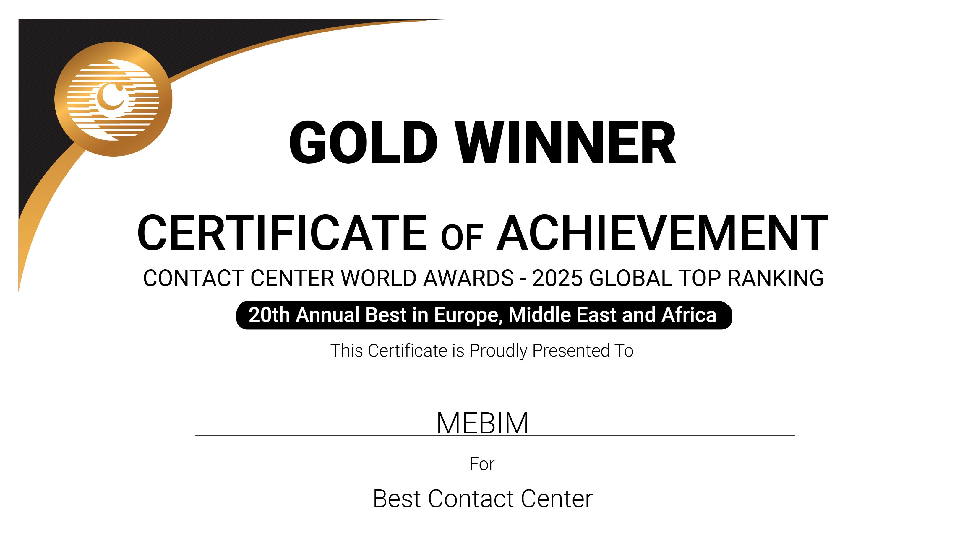 Milli Eğitim Bakanlığı ile Türksat A.Ş. iş birliğiyle yürütülen Milli Eğitim Bakanlığı İletişim Merkezi (MEB İM) hizmeti, Almanya’nın Berlin kentinde düzenlenen 20. Contact Center EMEA Finalleri’nde büyük bir başarıya imza attı. MEB İM, “En İyi İletişim Merkezi” kategorisinde altın madalya kazanarak Orta Avrupa ve Doğu Afrika bölgesinin birincisi oldu.