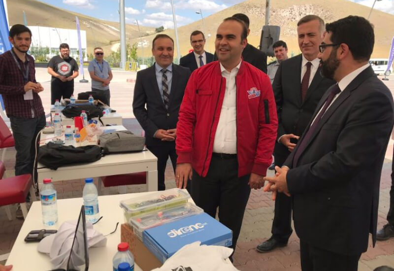 Yarışma alanını ziyaret eden Teknofest Yürütme Kurulu Üyesi ve Sanayi ve Teknoloji Bakan Yardımcısı Mehmet Fatih Kacır tek tek yarışmacı öğrencilerle sohbet ederek başarı dileklerini iletti.