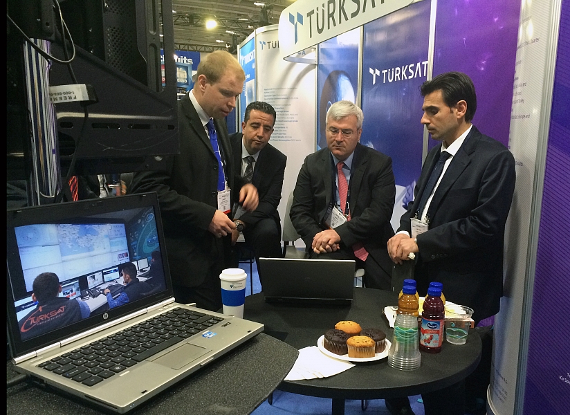 Pek çok yabancı firma ve ziyaretçi tarafından ziyaret edilen Türksat standında uydu haberleşme hizmetleri alanında yürüttüğümüz faaliyetlerin yanı sıra, yeni haberleşme uydularımız (Türksat 4A ve Türksat 4B) hakkında bilgi verildi. Fuar kapsamında, 2015 yılının Haziran ayında uzaya fırlatılacak olan ve yüksek kapasiteye sahip Türksat 4B haberleşme uydusuyla birlikte hedef pazarlarımızdaki etkinliğimizi artırmaya yönelik toplantılar yapıldı.