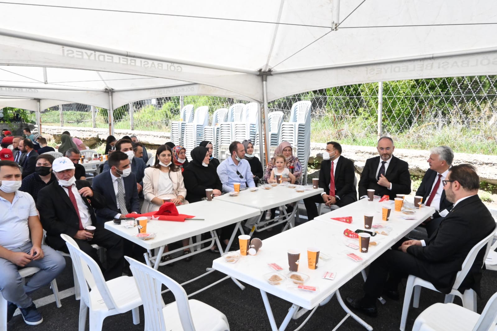 Anma programına şehit ve gazilerimizin ailelerinin yanı sıra Türksat Yönetim Kurulu Başkanı Prof. Dr. Kemal Yüksek, Dijital Dönüşüm Ofisi Başkanı Dr. Ali Taha Koç, Sağlık Bakan Yardımcısı Şuayip Birinci, Türksat Genel Müdürü Hasan Hüseyin Ertok, Gölbaşı Kaymakamı Tülay Baydar Bilgihan, Gölbaşı Belediye Başkanı Ramazan Şimşek, Türksat Yönetim Kurulu Üyesi İbrahim Kolcu ile birlikte Türksat A.Ş. üst yönetimi ve çalışanları katılım sağladı. Mevlid programının ardından misafirlere mevlid şekeri, şerbet ve helva ikram edildi.