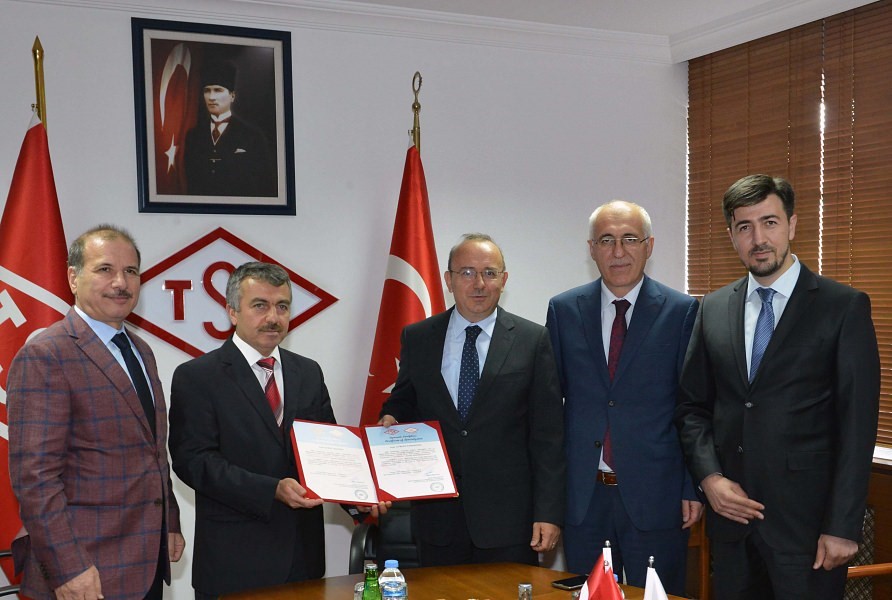 TSE Başkanlığı’nda gerçekleştirilen belge takdim töreninde TSE Başkanı Sebahittin Korkmaz, Türksat A.Ş. Genel Müdürü Prof. Dr. Ensar Gül, Türksat A.Ş. Genel Müdür Yardımcısı Dr. Halil Yeşilçimen, Türksat A.Ş. Kurumsal Bilgi ve Siber Güvenlik Yönetimi Direktörü Mehmet Ali Ortayatırtmacı hazır bulundu.