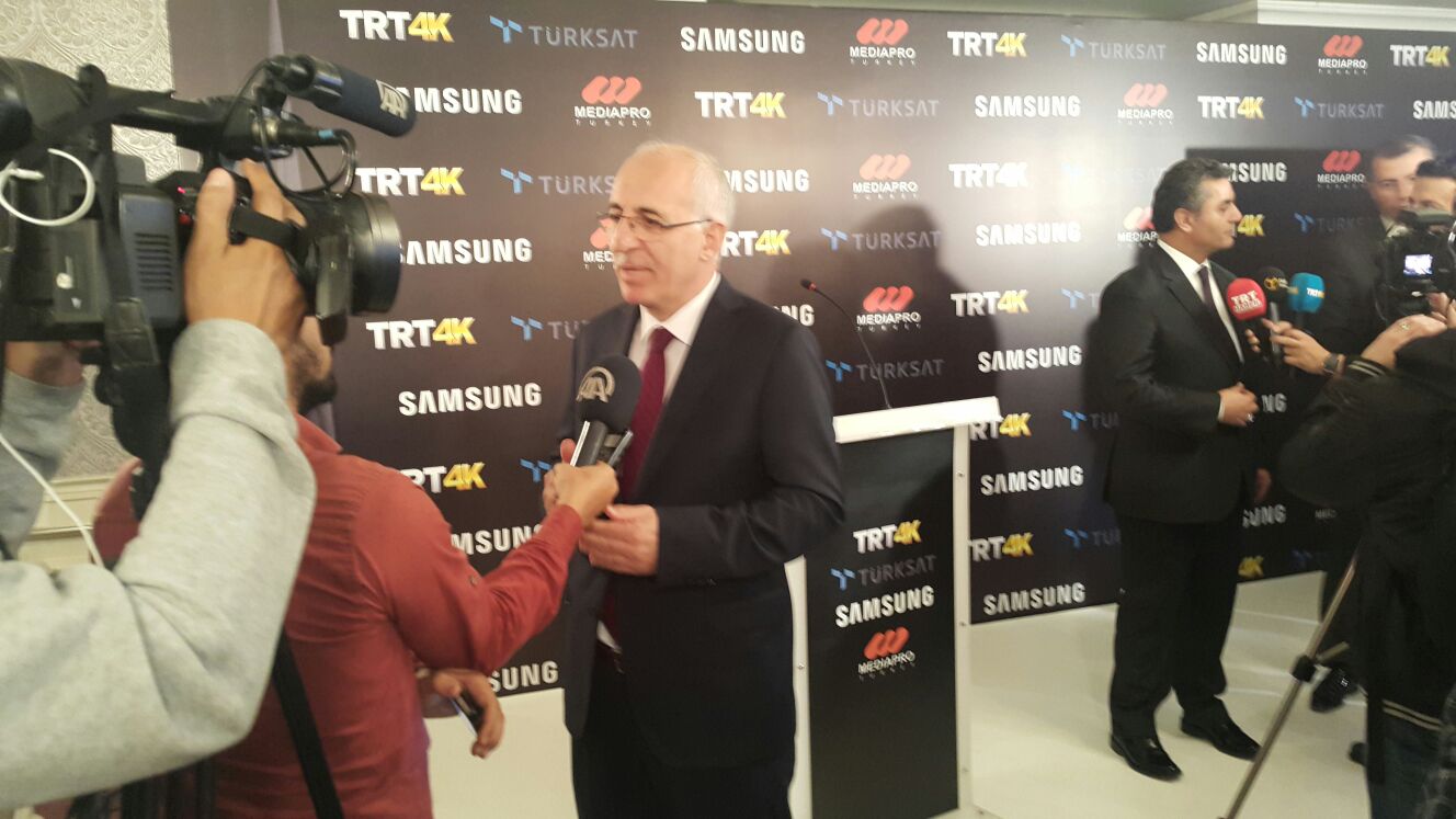 Basın toplantısında konuşan Prof. Dr. Gül, Cuma günü uzaya fırlatılan Türksat 4B haberleşme uydusuyla ilgili bilgiyi paylaştıktan sonra “4K yayınını geçen sene kendi imkânlarımızla test olarak başlattık. Daha sonra TRT ile işbirliği yaptık. Şubat ayında TRT 4K kanalı olarak test yayınına başlandı. Şimdi de maçlarımızı 4K teknolojisiyle yayınlıyoruz.” dedi.