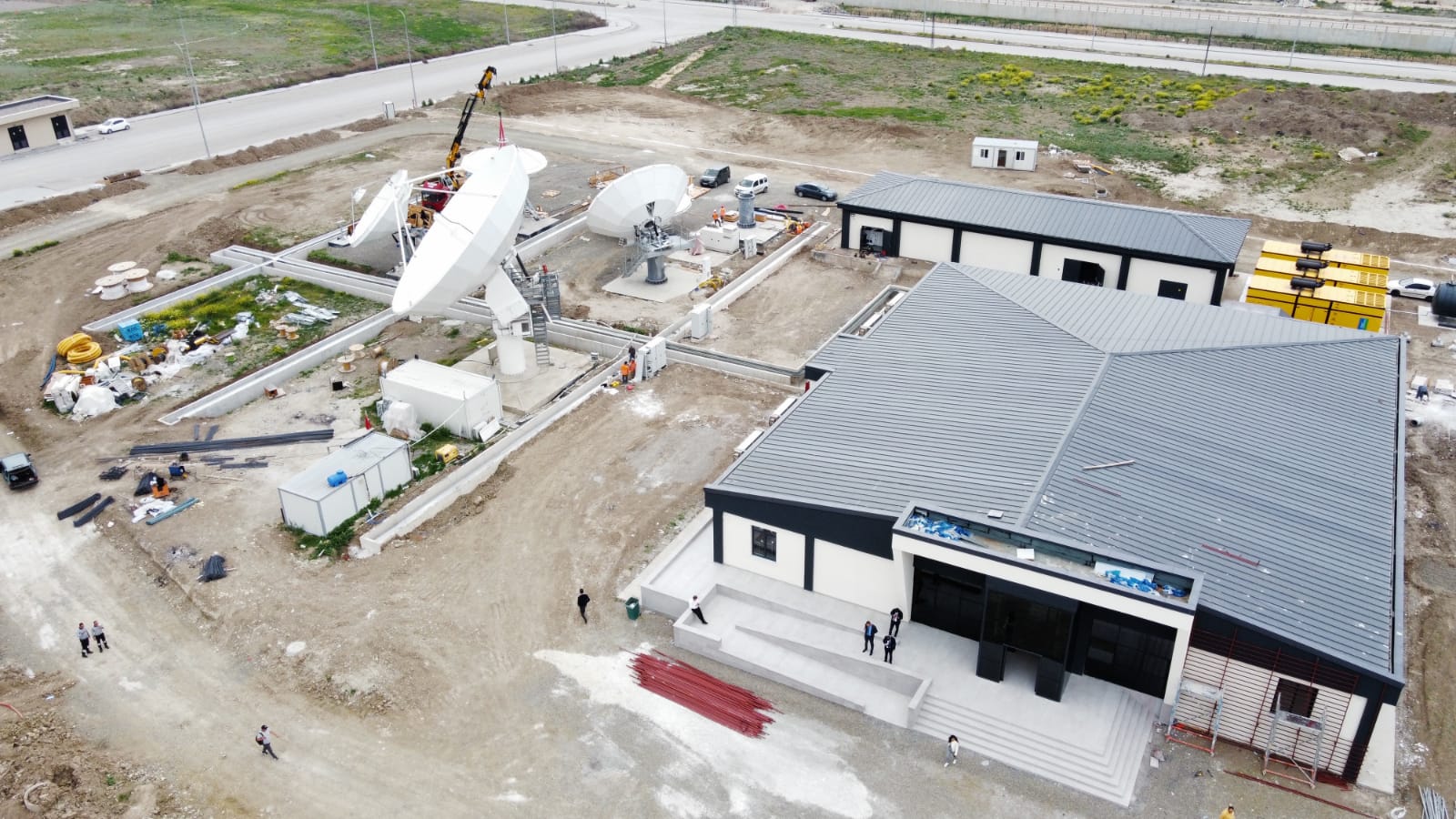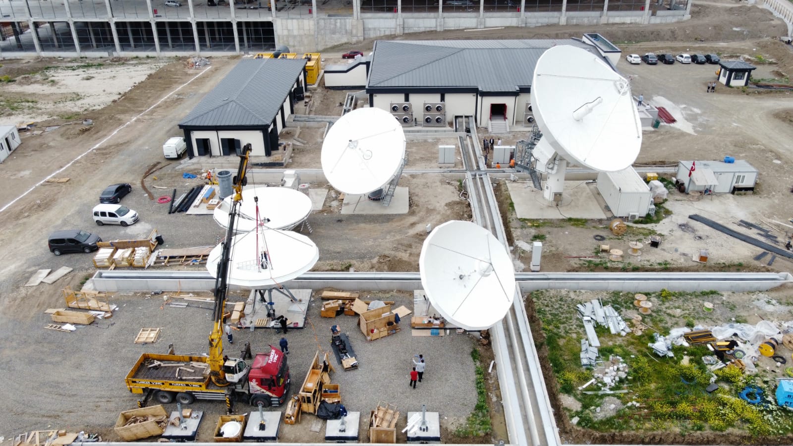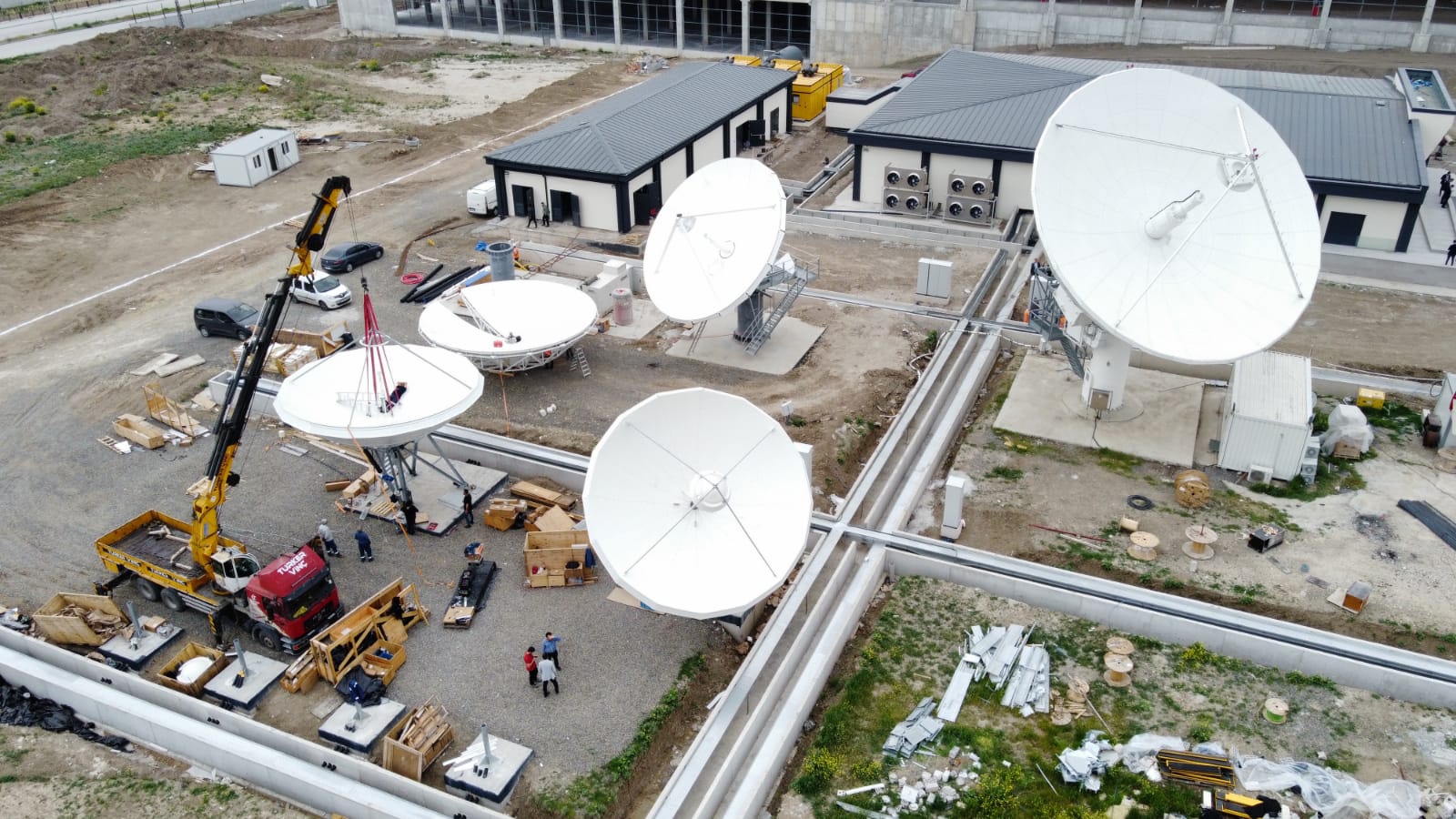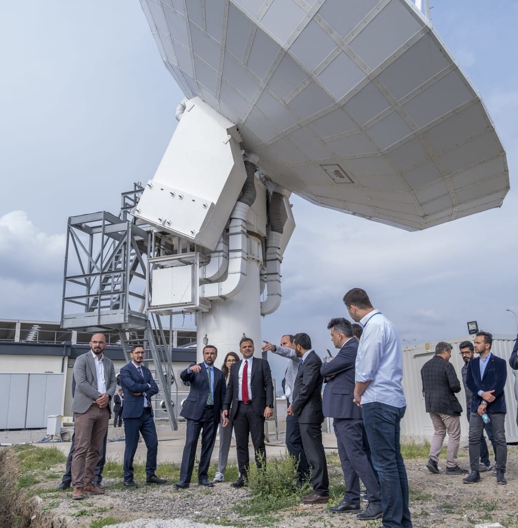 Ziyarette, Uzay ve Havacılık İhtisas Organize Sanayi bölgesinde (HAB) yapımı devam eden yedeklilik merkezinde, uydu yer kontrol istasyonları ile entegre çalışacak anten sistemlerine yönelik incelemelerde bulunularak gelinen son duruma ilişkin bilgi alındı.
