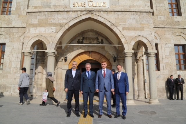 Türksat Genel Müdür Yardımcısı Abdulkadir Şener ile birlikte Kablo Sistemleri Altyapı ve İşletme Direktörü Ömer Tekiner ve Teftiş Kurulu Başkanlığı’ndan Adnan Çelik, Sivas Valisi Davut Gül’e ve Sivas Belediye Başkanı Sami Aydın'a yapılabilecek KabloTV altyapı ve yatırımlar hakkında bilgi verdi.