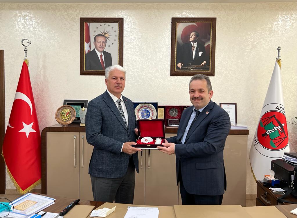 Yönetim Kurulu Başkanımız Prof.Dr. Yüksek, Cumhurbaşkanı kararıyla Ocak ayı sonunda Adli Tıp Kurumu Başkanlığı görevine atanan Dr. Hızır Aslıyüksek'e nezaket ziyaretinde bulundu. Aslıyüksek de ziyarette bulunan Prof. Dr. Yüksek'e teşekkürlerini ileterek hediye takdim etti.