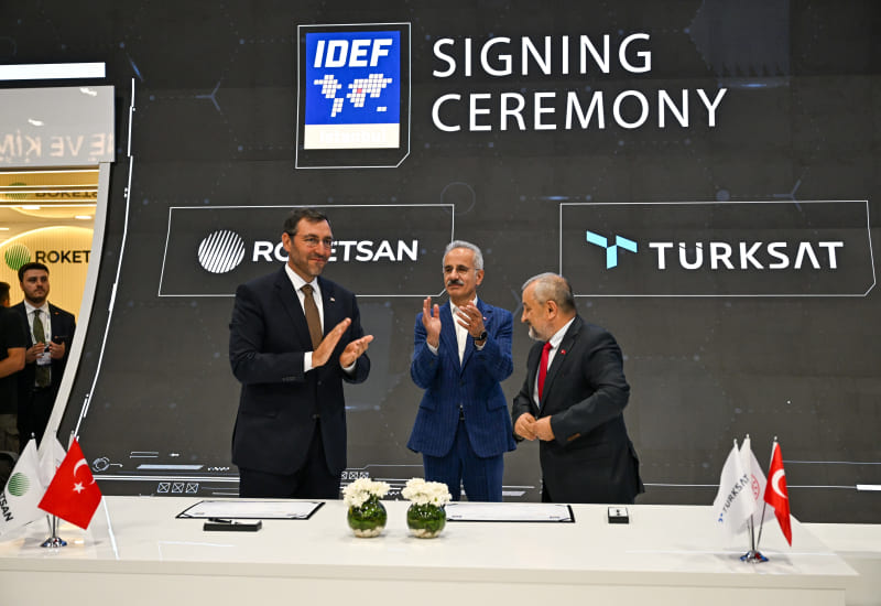 Türkiye’s satellite operator Türksat and Roketsan, one of the leading institutions of the defense industry, signed a significant cooperation within the scope of IDEF 2025. The protocol regarding joint work to be carried out in the field of satellite launch systems and space technologies was signed by Türksat CEO Ahmet Hamdi Atalay and Roketsan CEO Murat İkinci under the auspices of Minister of Transport and Infrastructure Abdulkadir Uraloğlu.